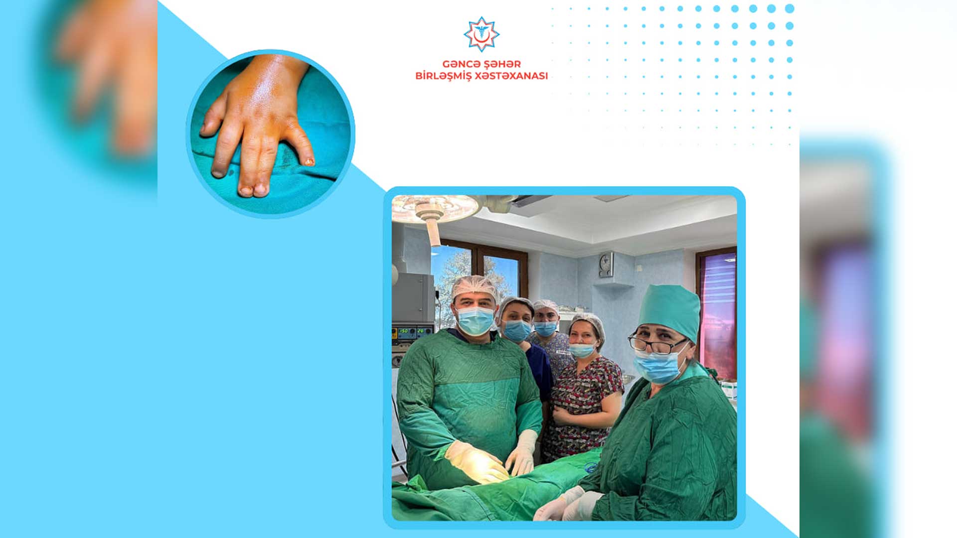 Şəhər Birləşmiş Xəstəxanasının nəzdində olan Abbas Səhhət adına Xəstəxanaya 2 yaşlı (kişi cinsli) uşaq anadangəlmə sindaktiliya diaqnozu ilə yerləşdirilib. Müayinələri aparılan pasiyent həkim-travmatoloq-ortoped Rahib İsgəndərzadə və uzman həkim-reanimatoloq-anestezioloq Murad Musayev tərəfindən əməliyyat olunub.