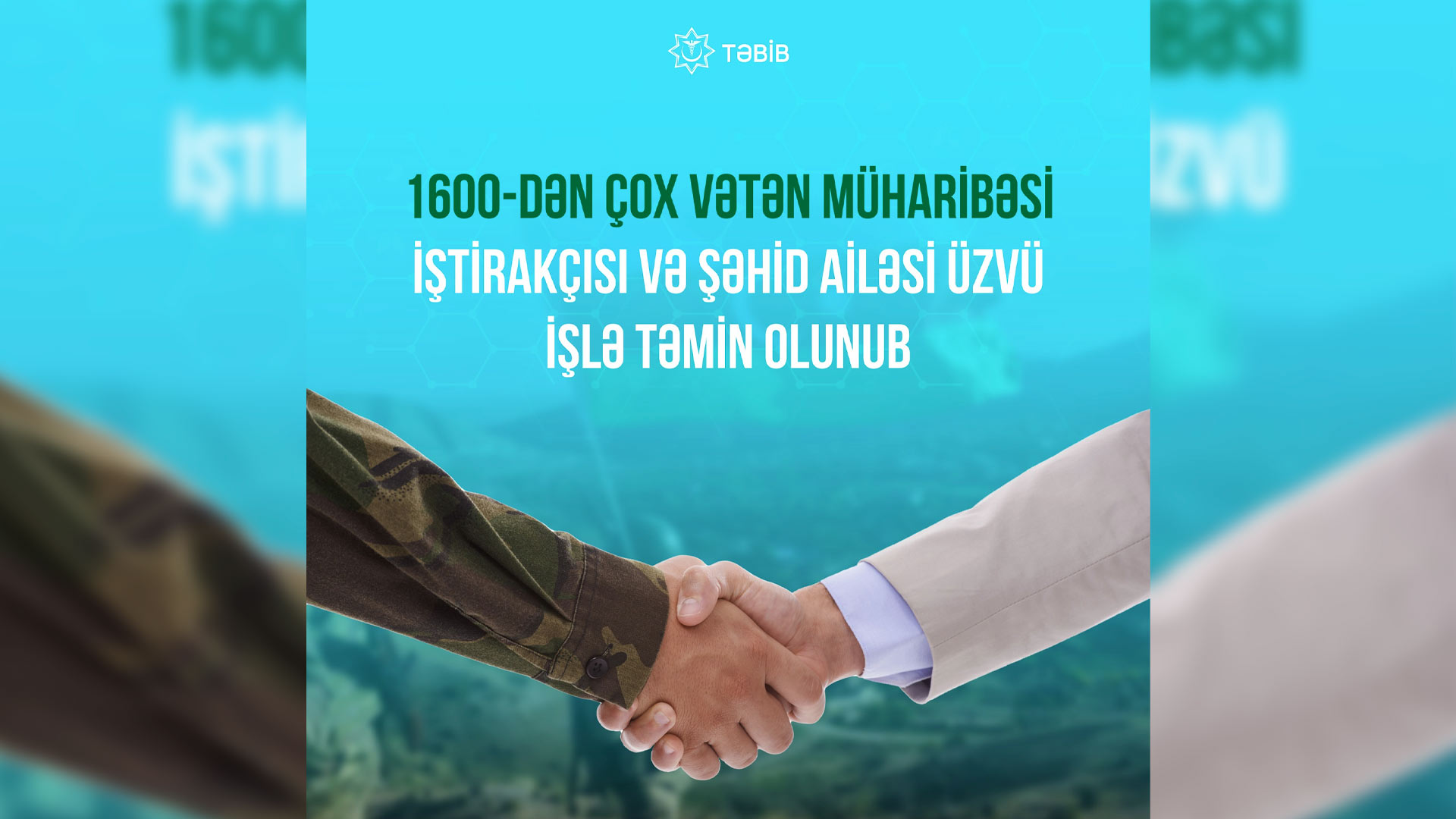 Tibbi Ərazi Bölmələrini İdarəetmə Birliyi (TƏBİB) tabeliyindəki səhiyyə ocaqlarında işlə təmin olunan Vətən müharibəsi iştirakçılarının statistikasını hazırlayıb.