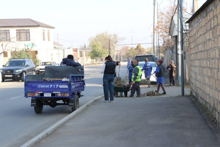 Adıçəkilən ərazilər məişət tullantılarından, alaq otlarından, xəzəldən və toz-torpaqdan təmizlənib, səki və bordürlərin dibi süpürülüb. Yığılan tullantılar bir yerə toplanaraq ərazidən daşınması təmin edilib.