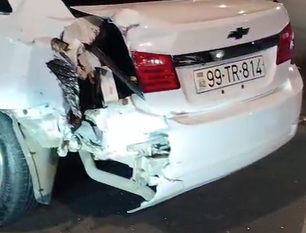 Hərəkətdə olan "Chevrolet" markalı minik maşını "BakuBus"a məxsus sərnişin avtobusu ilə toqquşub.