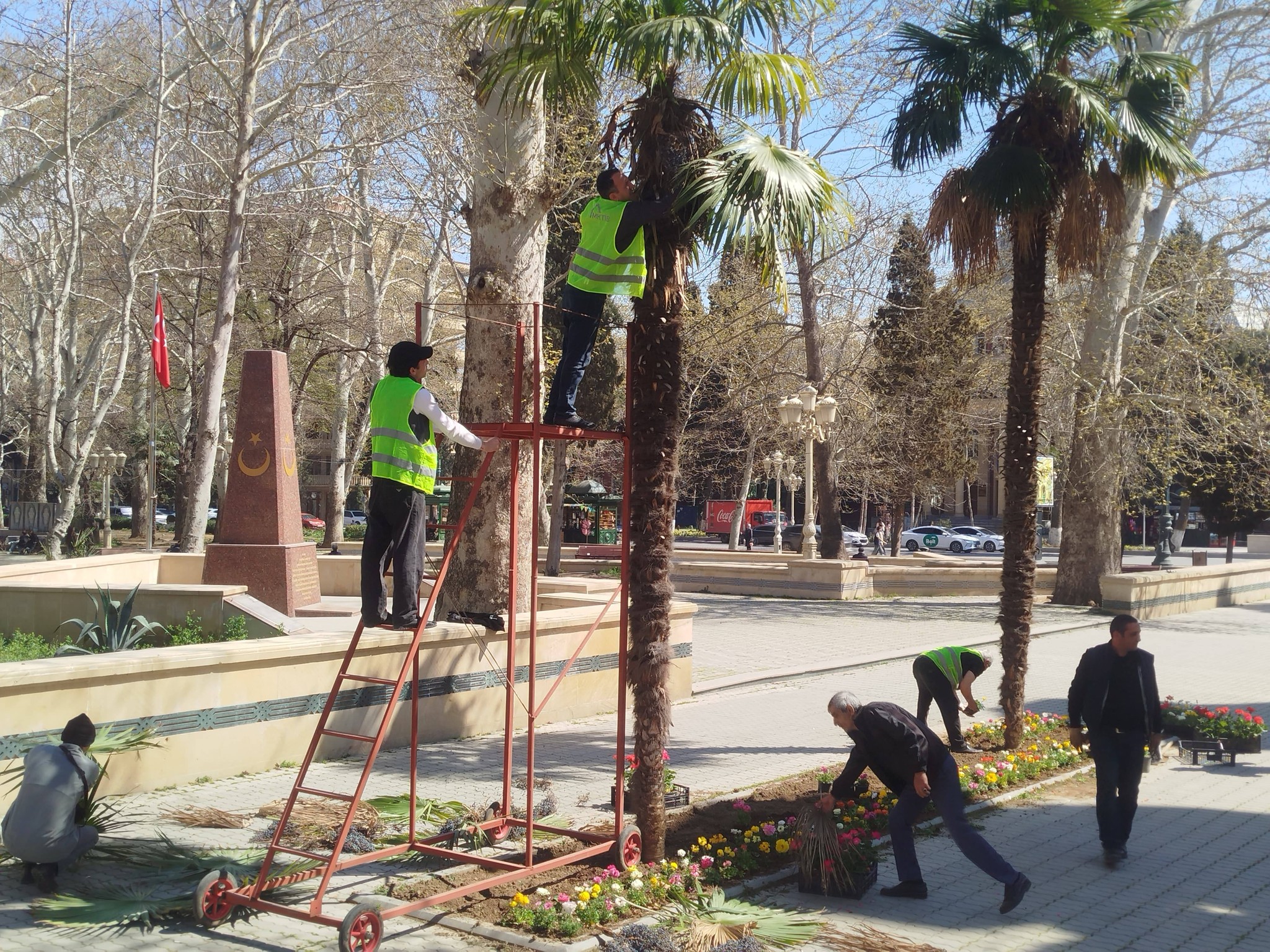Görülən işlərlə yanaşı şöbənin əməkdaşları tərəfindən mövcud yaşıllıqlara, güllərə və dekorativ kol bitkilərinə aqrotexniki qulluq göstərilib, suvarılması da təmin edilib.