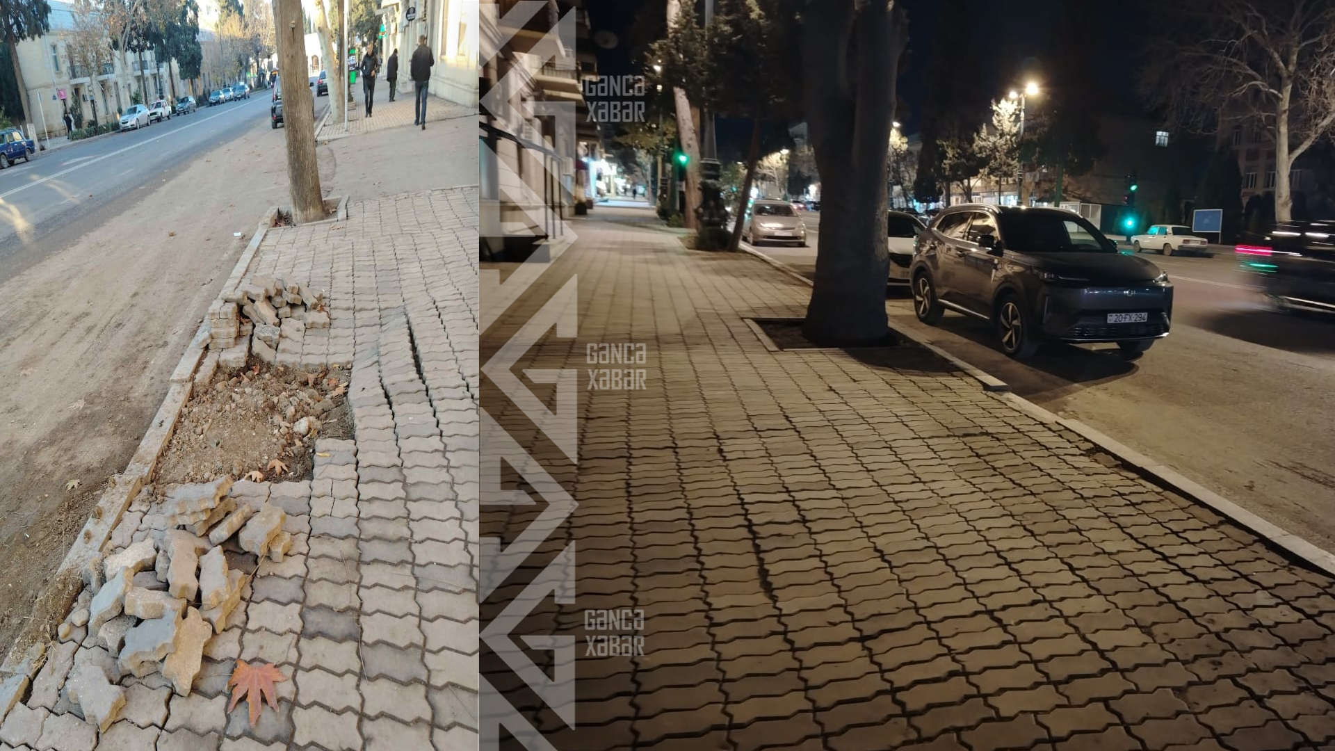 Gəncə şəhərinin Heydər Əliyev prospekti, 22 ünvanında piyada səkisinin yararsız vəziyyətdə olan hissəsində təmir işləri görülüb.