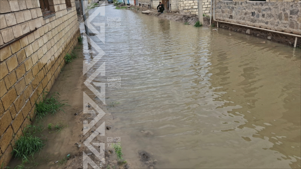 Gəncədə gecə saatlarında yağan leysan xarakterli yağış Məhsəti qəsəbəsində ciddi problemlərə yol açıb.