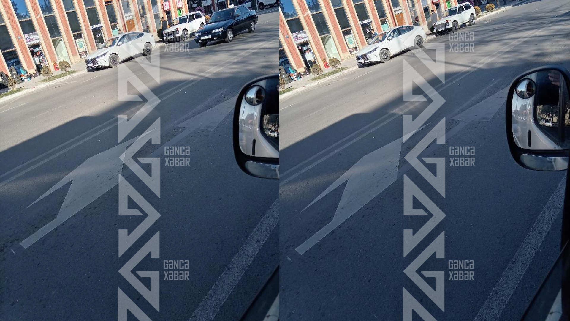 Gəncə şəhərində Heydər Əliyev və Şah İsmayıl Xətai prospektlərinin kəsişməsində yol üzərində çəkilmiş istiqamətləndirici nişan sürücülərdə çaşqınlıq yaradaraq cərimələnmələrə səbəb olur.