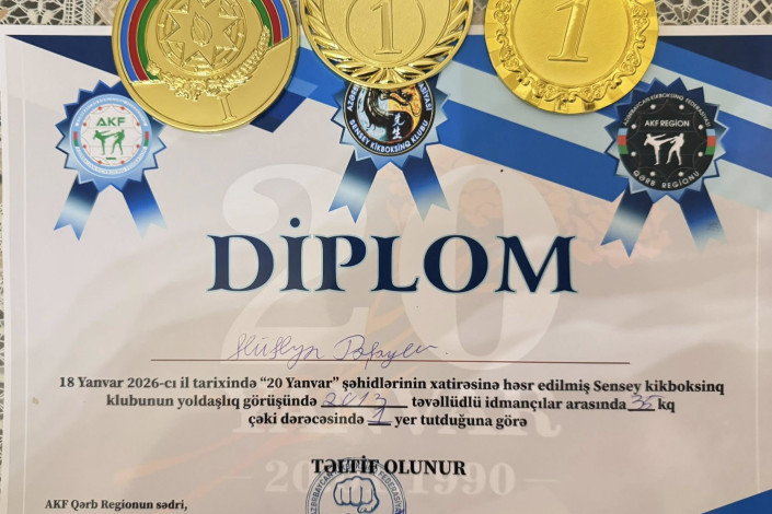 Həmçinin 13 yaşlı idmançı 18 yanvar 2026-cı il tarixində 20 Yanvar şəhidlərinin xatirəsinə həsr olunan Sensey Kikboksinq Klubunun yoldaşlıq görüşündə 2013-cü il təvəllüdlü idmançılar arasında 35 kq çəki dərəcəsində I yerə layiq görülərək diplomla təltif olunub.