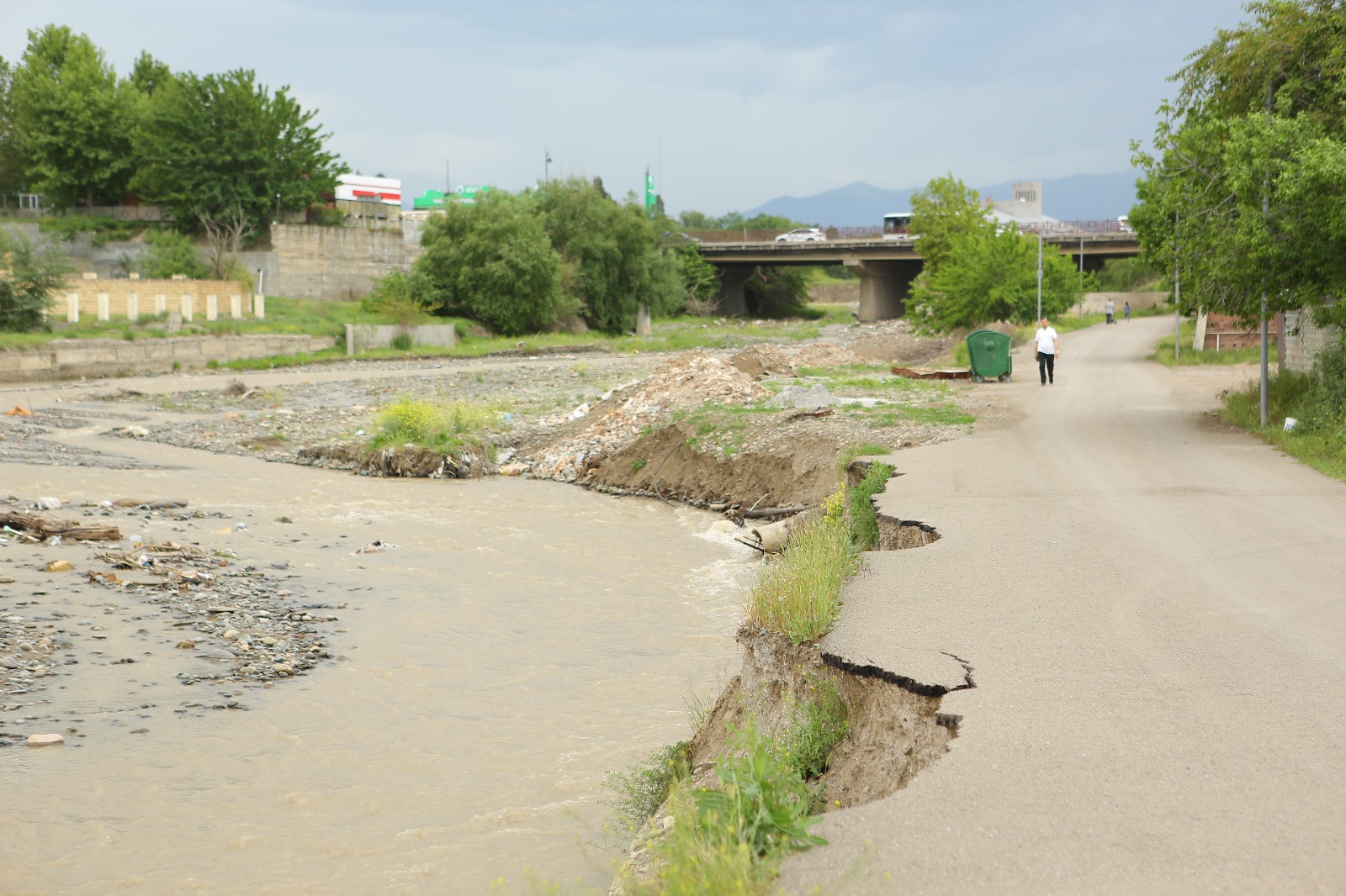 Xəbər verdiyimiz kimi, Gəncəçayın Məmməd Bürcəliyev küçəsindən keçən hissəsində məcrada müşahidə olunan sululuq artımı nəticəsində avtomobil yolu bir neçə yerdə dağılıb.
