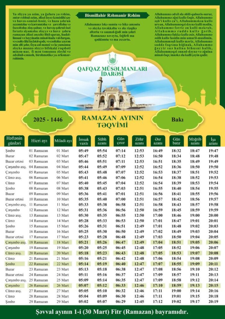 Bu barədə Qafqaz Müsəlmanları İdarəsinin Ramazan ayına xüsusi təqvimində qeyd edilib.