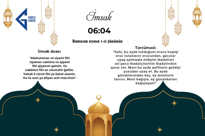 Gencexeber.az məlumat verir ki, Qafqaz Müsəlmanları İdarəsinin açıqladığı təqvimə əsasən, sabah, fevralın 19-u Ramazan ayının ilk günüdür.