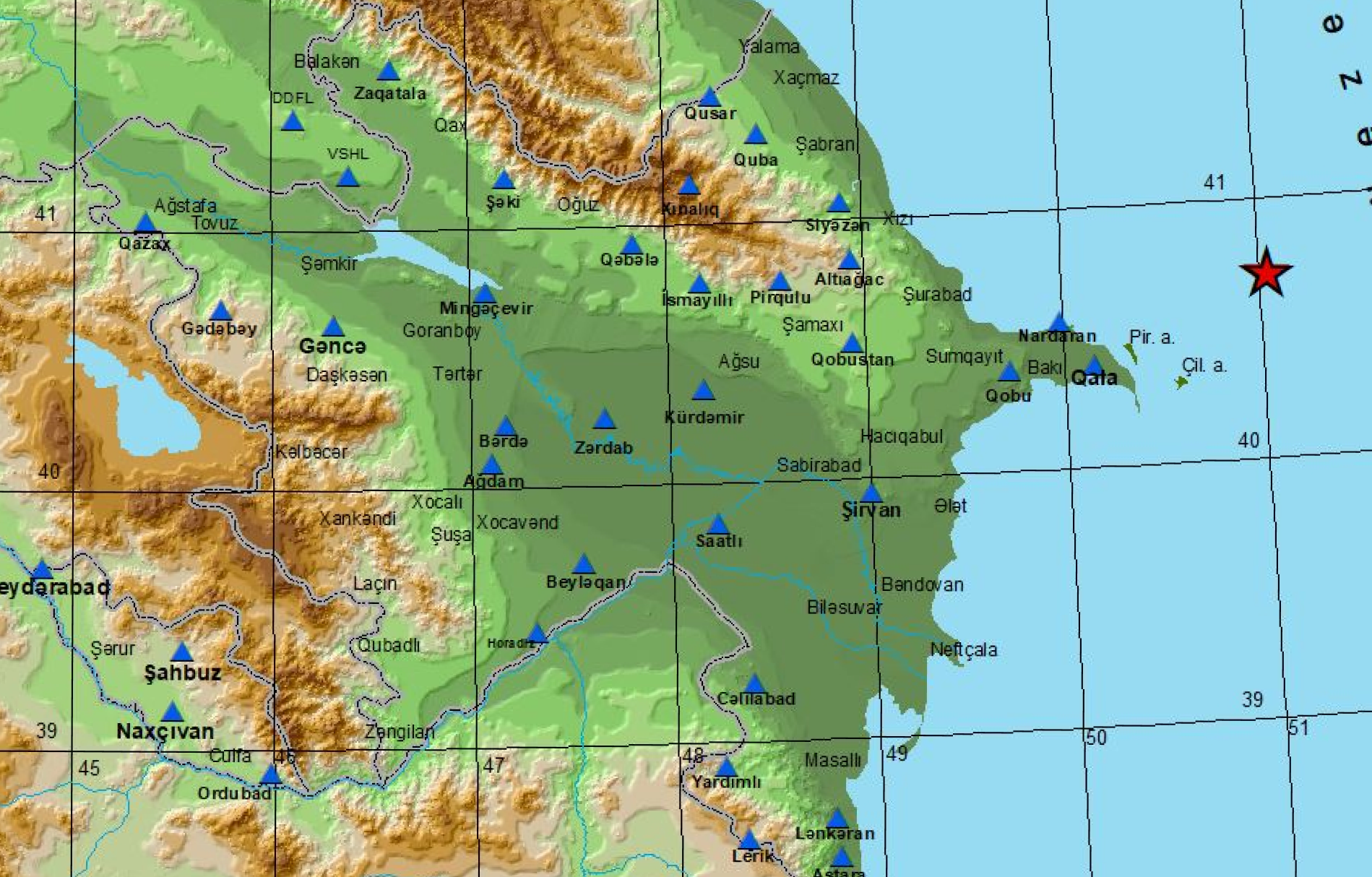 Xəzər dənizinin Azərbaycan ərazisinə düşən hissəsində zəlzələ qeydə alınıb.