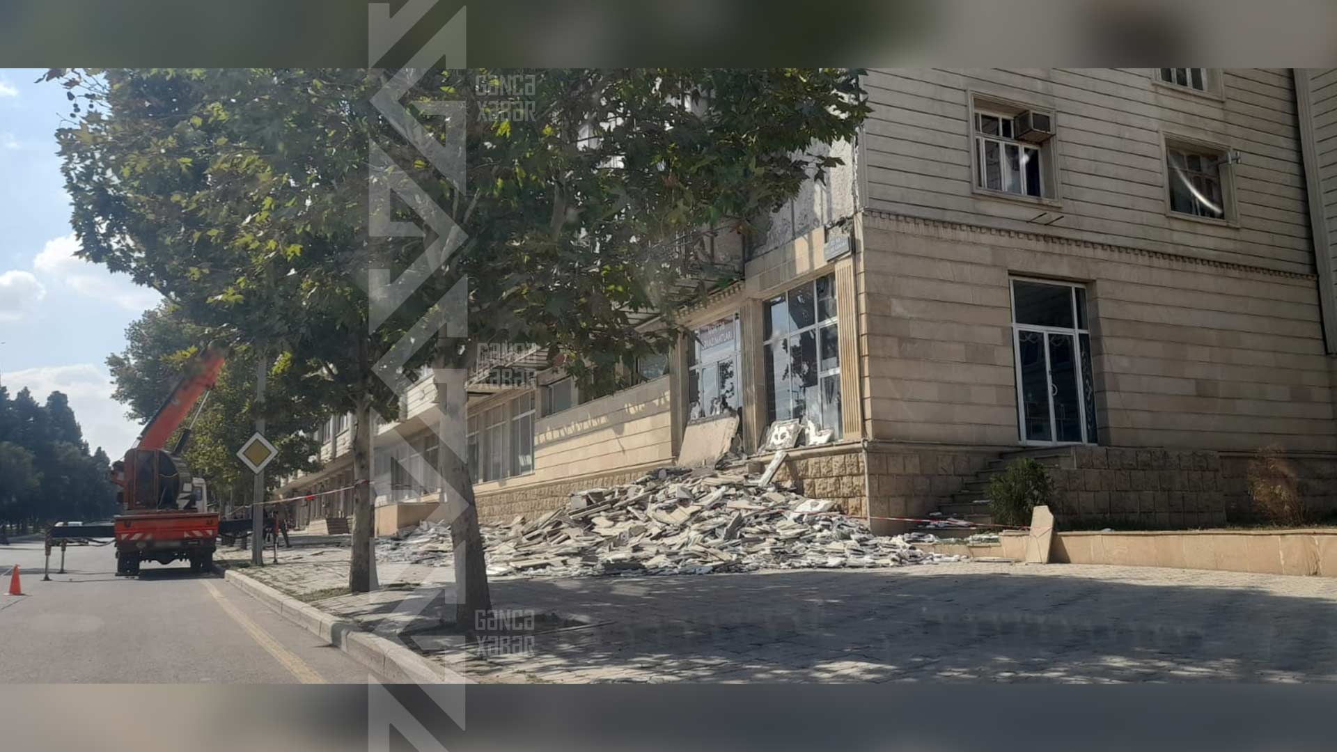 Sözügedən işlər şəhərin Nəriman Nərimanov prospektində aparılır. Ərazidə canlı qüvvə və texnika çalışır. Prospektin 134 saylı ünvanında yerləşən binanın köhnə örtüyü sökülür. Bildirilib ki, fasad yenilənəcək.