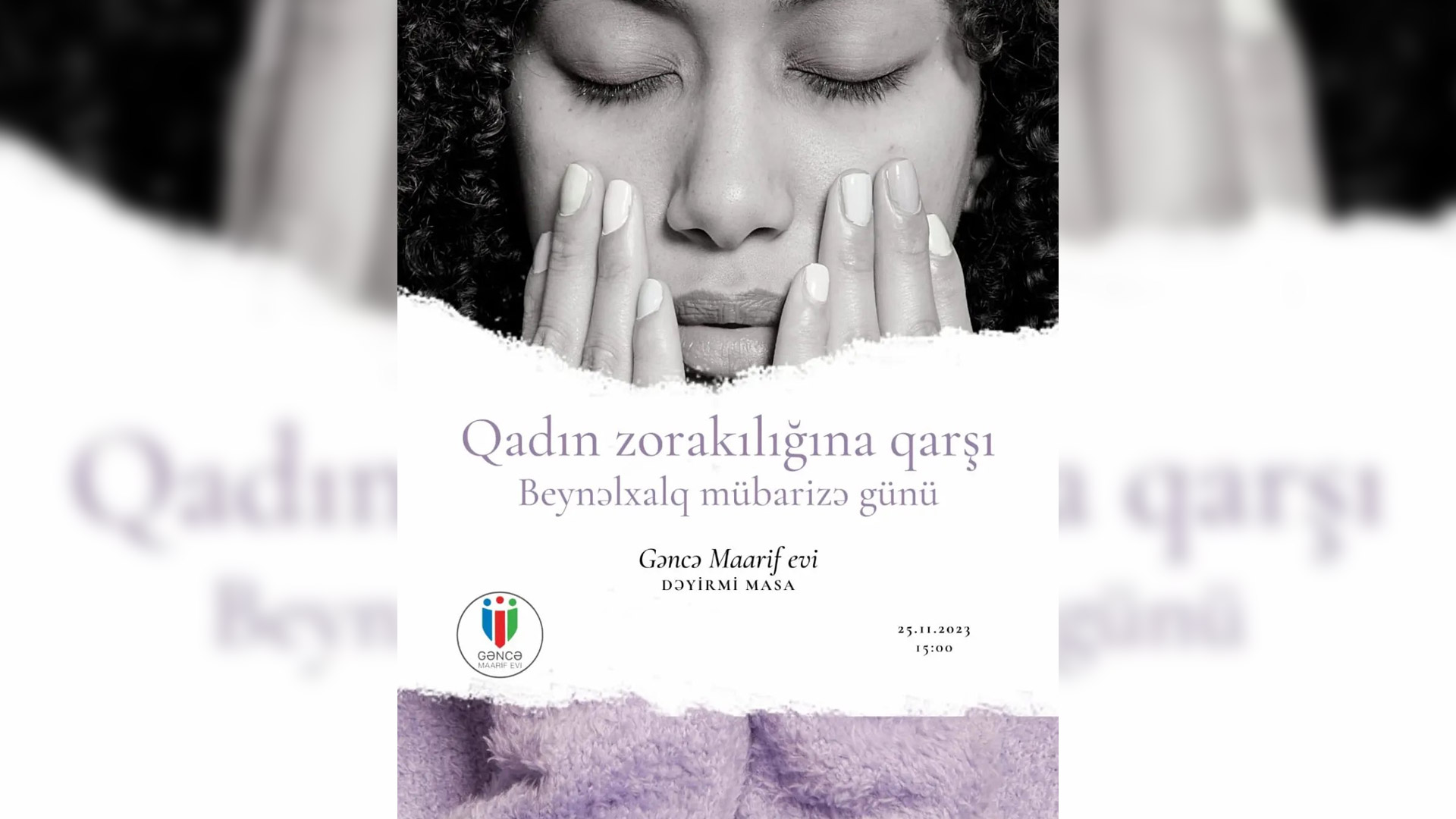 "25 Noyabr - Qadın zorakılığına qarşı beynəlxalq mübarizə günü"nə həsr edilmiş dəyirmi masa baş tutacaq. Tədbir 25 noyabr tarixində saat 15:00-da keçiriləcək. Toplantı Maarif Evi İctimai Birliyinin təşkilatçılığı ilə baş tutacaq.