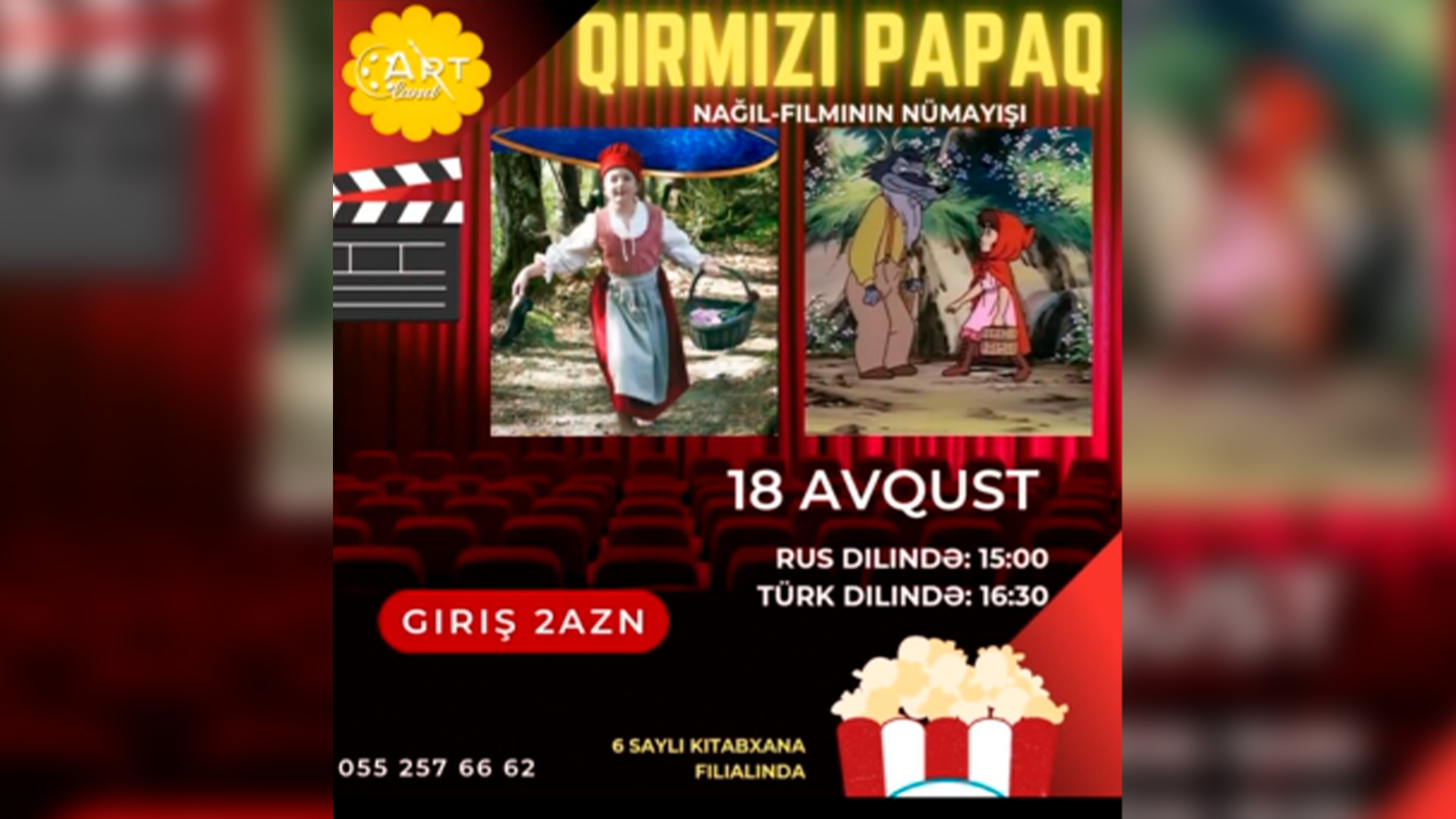"Artland" Cinemanın növbəti film nümayişi keçiriləcək. Tanınmış "Qırmızı Papaq" film-nağılı uşaqlar üçün təqdim ediləcək. Ekran işi rus və türk dillərində nümayiş olunacaq.