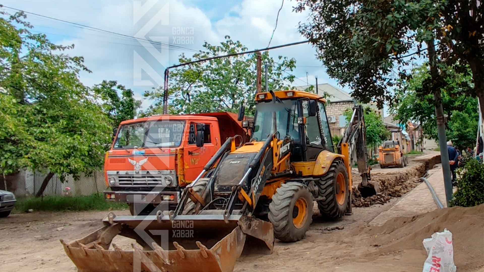 Binanın qarşısında və küçədə canlı qüvvə və texnika çalışır. Hazırda cığırlar qazılır. Daha sonra həmin yerlərə borular yerləşdiriləcək.