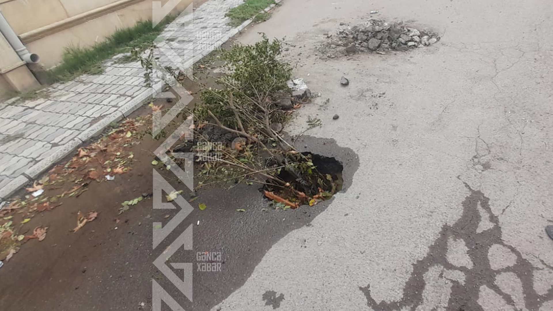 Hadisə şəhərin Rahib Əliyev küçəsində qeydə alınıb. Heydər Əliyev prospekti ilə kəsişən hissədə sakinləri içməli su ilə təchiz edən yeraltı boru partlayıb. Nəticədə həmin ərazidə asfalt örtüyü çöküb və çuxur əmələ gəlib. Bundan başqa, küçə boyunca bir neçə gündür su axır.