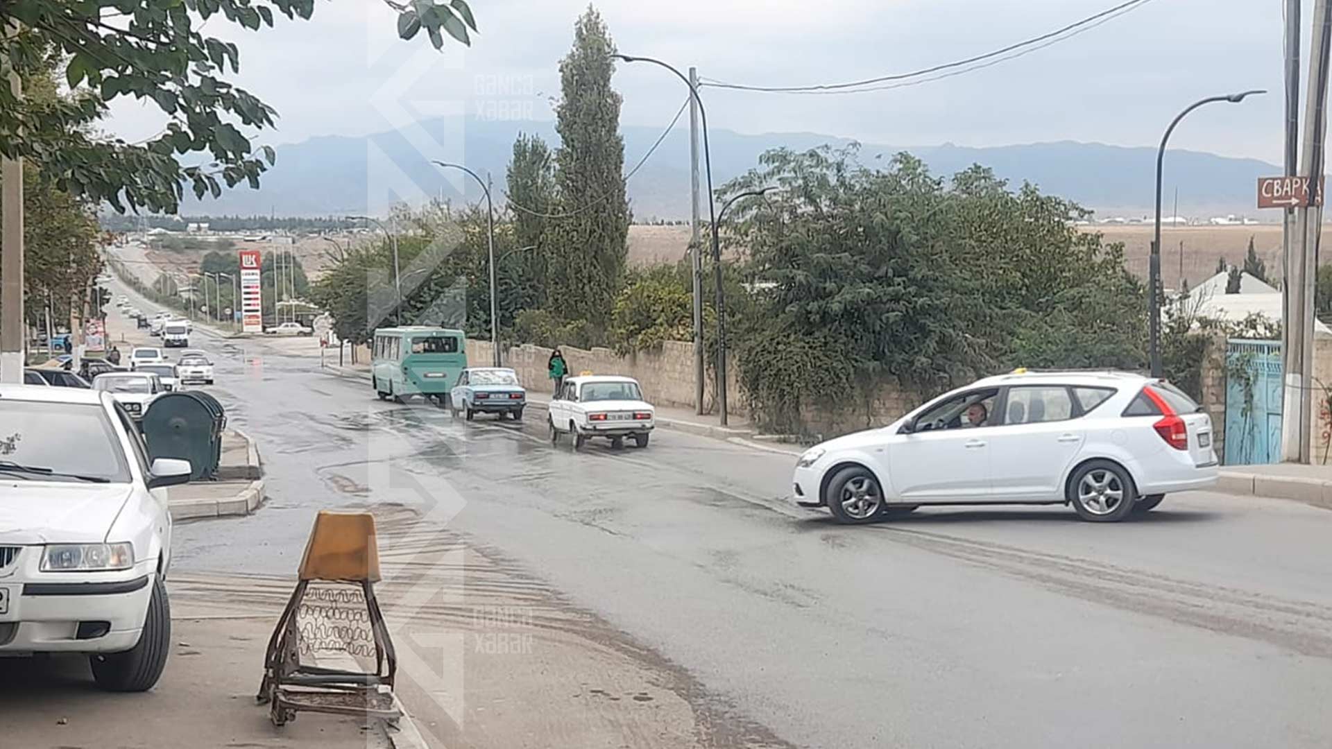 Söhbət Təbriz küçəsindən gedir. Ərazidə yerin altında yerləşən su xətti partlayıb. Qəza nəticəsində su küçə boyunca axmağa başlayıb.